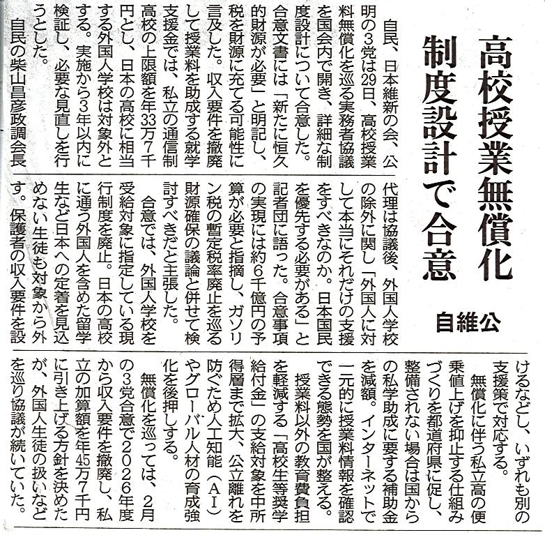 政治の合意で、就学支援金の家庭の上限が撤廃されましたが、徐々に詳細が決まっているところです。拡大したいときは、タップ(またはクリック)してください。これは昨年10月30日の中日新聞の記事です…